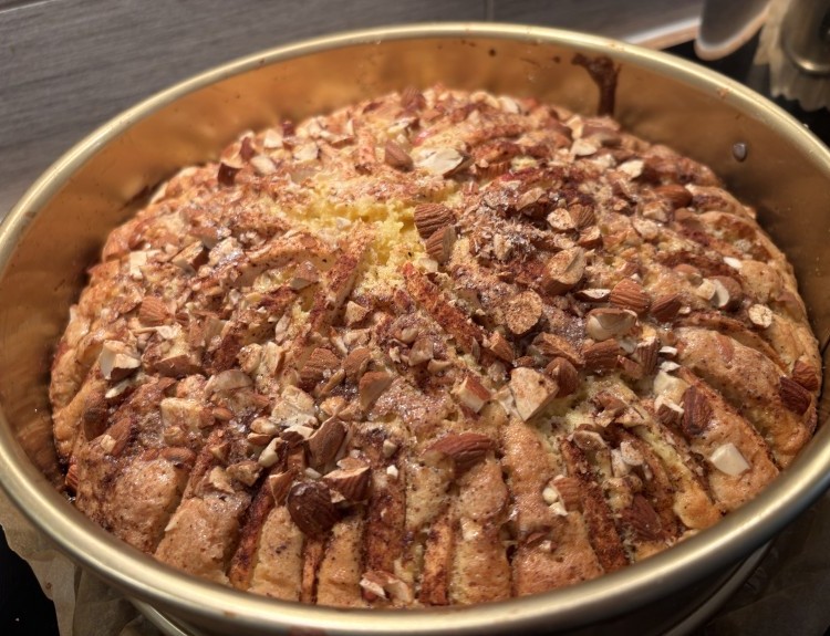 En veldig god gulrotkake med eple- og sjokoladebiter inni.